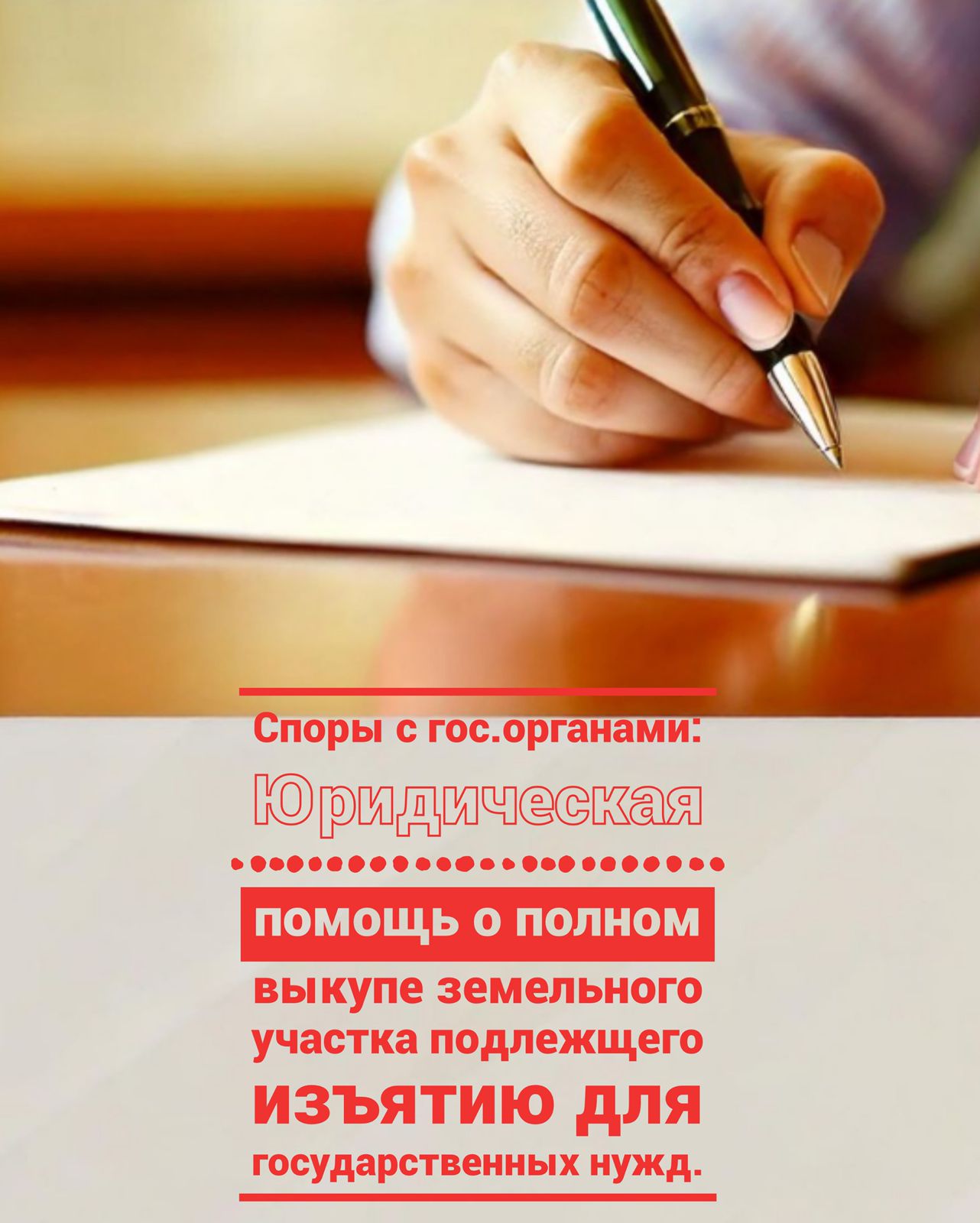 Споры с гос.органами: Юридическая помощь о полном выкупе земельного участка подлежщего изъятию для государственных нужд.